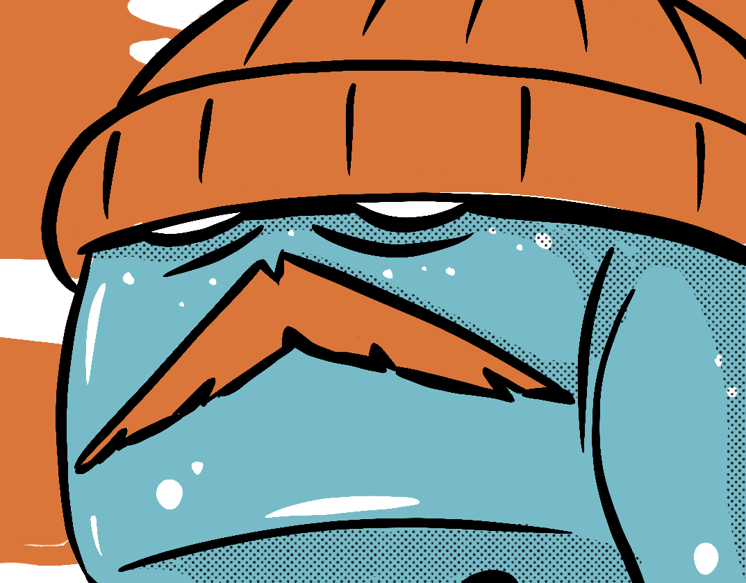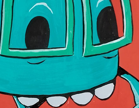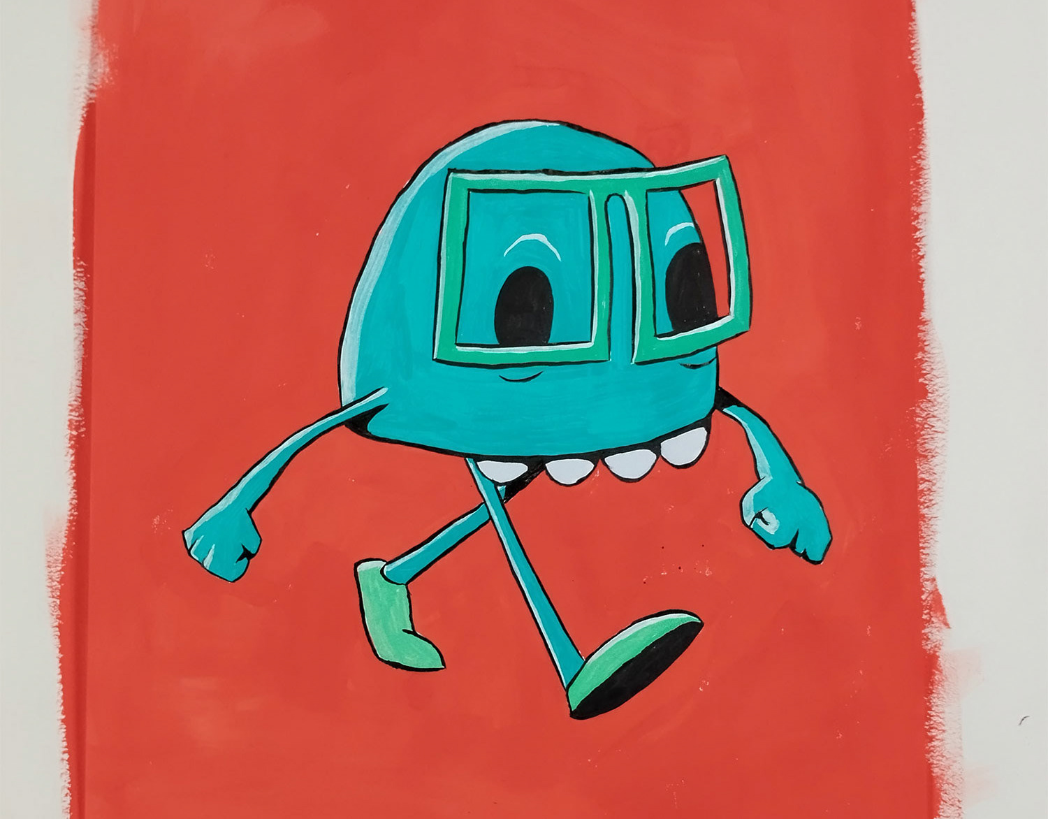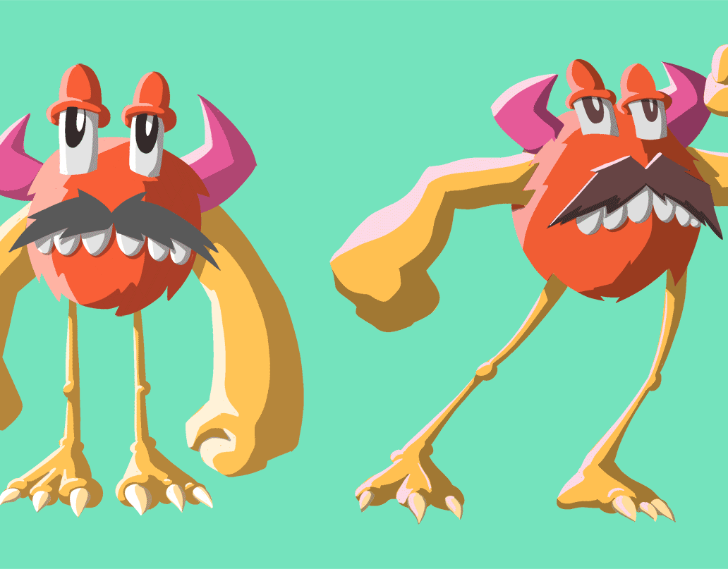 When I asked him if I could draw one of his Pius he gave me a little briefing on the character. This little creature here for example is a male. The female looks nearly the same but has longer hair and is evil. He eats smaller PIUS and his super power is his ability to climb up on basically anything with his arms and legs that are completely flexible.